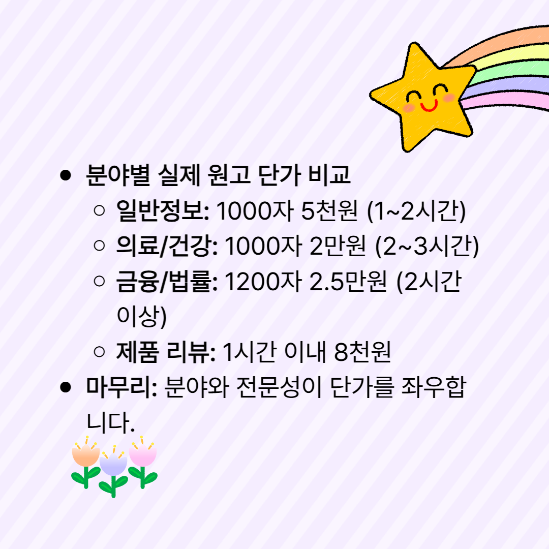 실제 원고 단가 비교표 (2025년 기준)