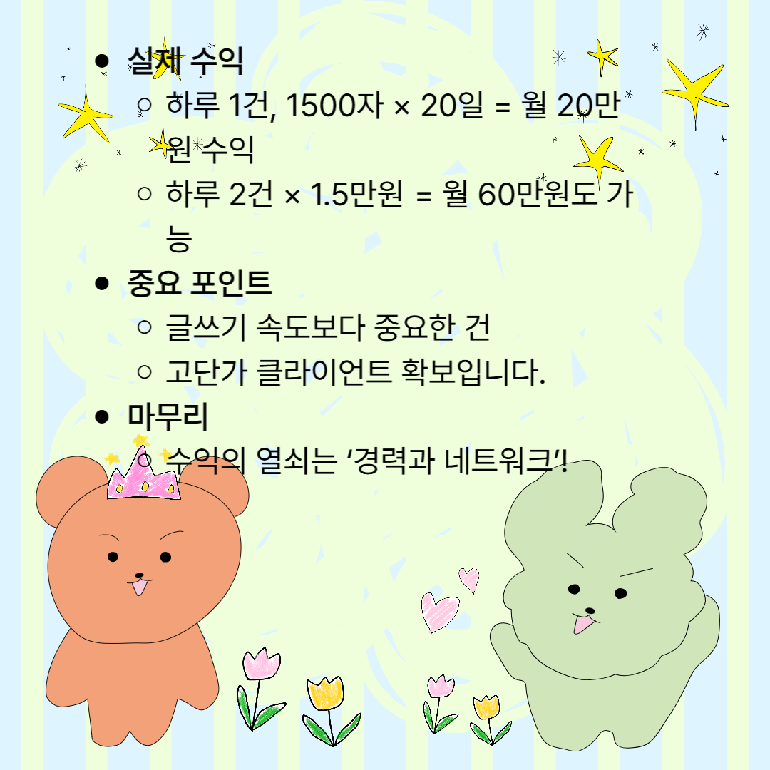 👉 하루 2건 × 1.5만 원 × 20일 = 60만 원 수익도 가능