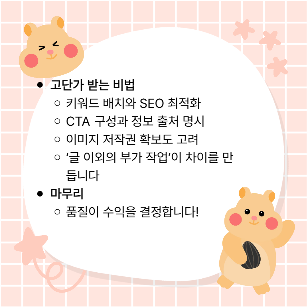 "검색 최적화(SEO)까지 신경 써주는 글"이 높은 평가를 받는다는 점입니다.