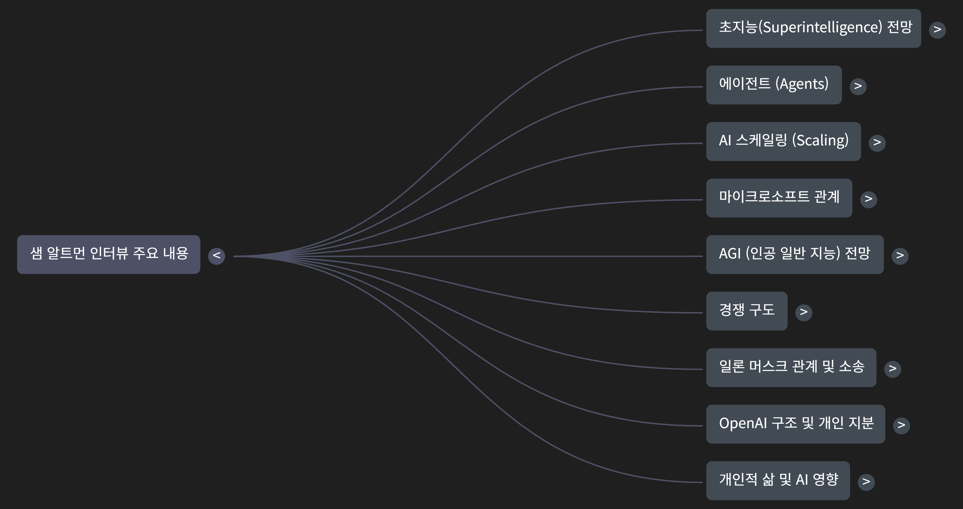 *Agents (에이전트): 복잡한 작업을 이해하고 스스로 계획하며 다양한 도구를 사용하여 목표를 달성할 수 있는 AI 시스템. 알트먼은 2025년에 중요한 발전이 있을 것으로 예상하는 분야입니다.