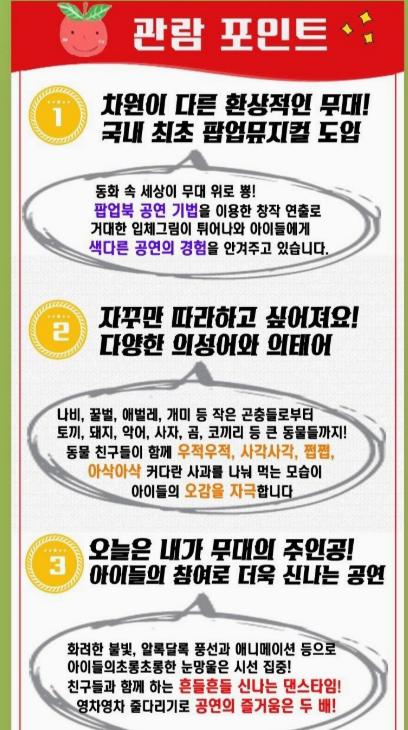 특히 처음 공연 관람을 경험하는 아이라면, 30분 정도 짧은 공연부터 시작하는 것도 좋은 방법입니다.