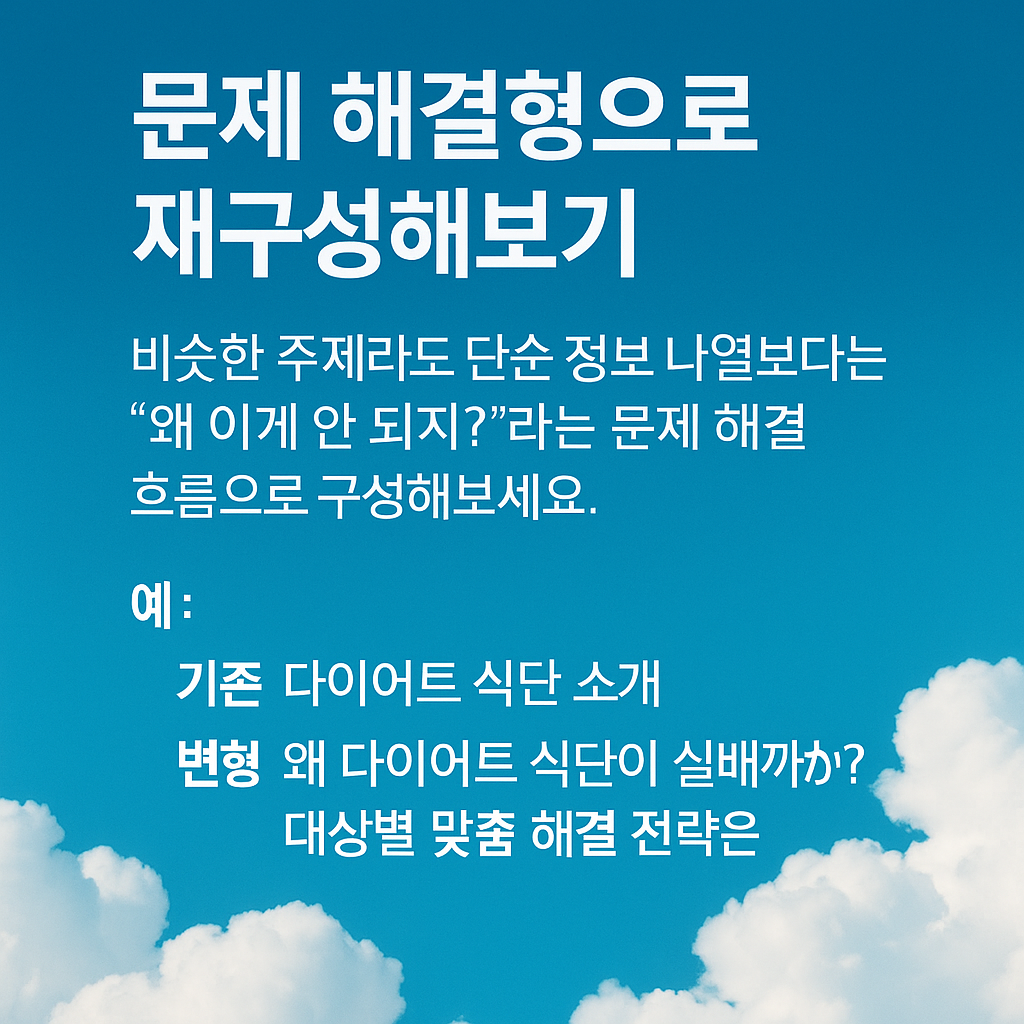 비슷한 주제라도 단순 정보 나열보다는 “왜 이게 안 되지?”라는 문제 해결 흐름으로 구성해 보세요.