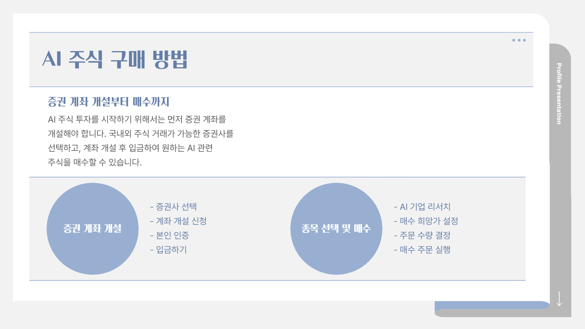 AI 주식을 사기 위해선 먼저 증권 계좌가 필요해요. 국내 주식은 키움증권, 삼성증권, 미래에셋 등에서 쉽게 거래할 수 있고, 해외 주식은 미국 주식 거래 지원이 가능한 증권사를 선택해야 해요.