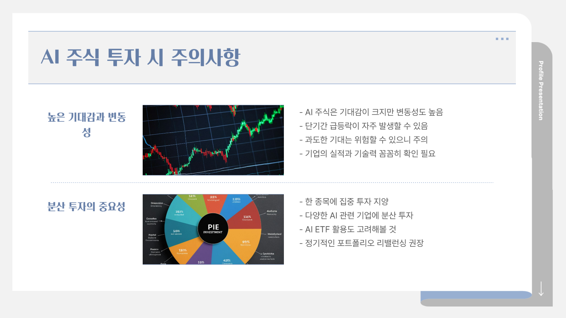 AI 주식은 기대감이 크지만 변동성도 크다는 점을 꼭 기억하세요. 단기간에 급등락이 심할 수 있으므로, 다음을 체크해 보세요.