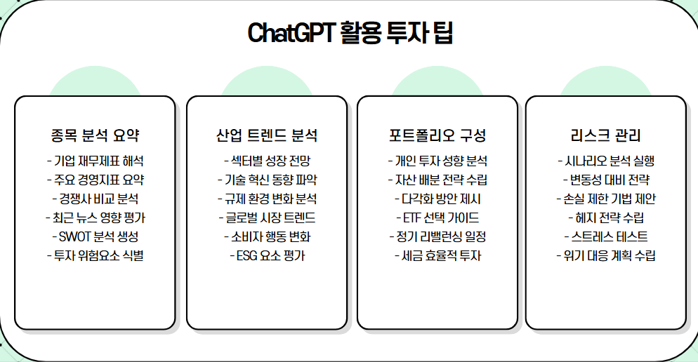- ChatGPT는 투자에 실질적인 도움을 줄 수 있는 도구입니다