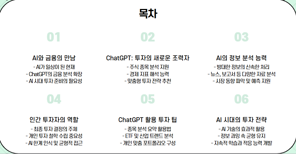 ChatGPT로 투자하는 시대는 이미 도래했습니다. 이제 중요한 건, 그 기술을 어떻게 활용하느냐입니다. 정보에 휘둘리지 않고, AI를 하나의 도구로 삼아 자신만의 투자 감각을 키워가시길 바랍니다.