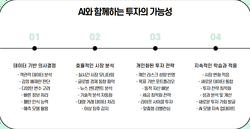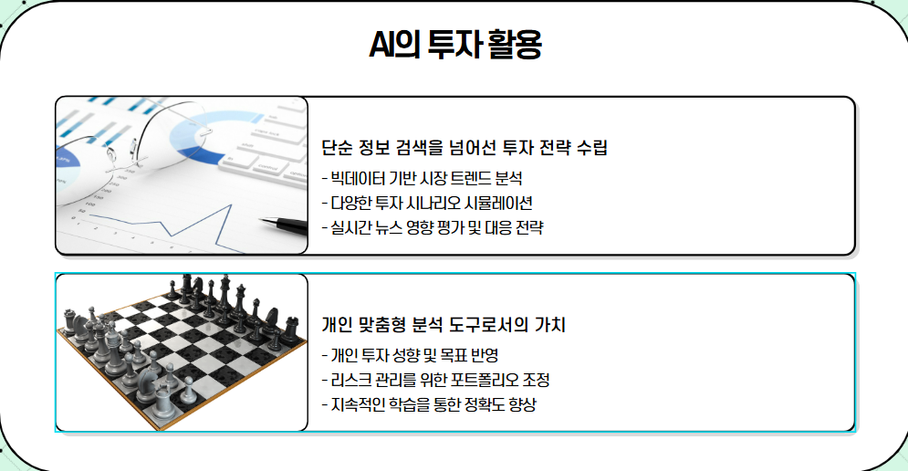 ✔ AI는 단순 정보 검색을 넘어 투자 전략 수립에 활용됨