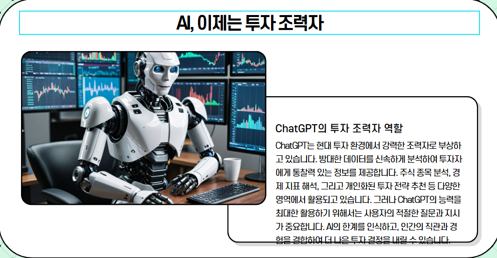 - ChatGPT는 투자에 실질적인 도움을 줄 수 있는 도구입니다